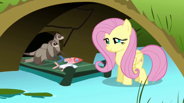 While out picking flowers, Fluttershy finds a flying insect she's never seen before. Ever the caregiver, she crushes an apple for it to eat, only for it to devour the entire basket of apples. Blinded by the cuteness, Fluttershy not only lets it nestle in her hair, but takes it back to town to show her friends. Meanwhile, Twilight Sparkle is freaking out: Princess Celestia is coming for a visit, and the library is still covered in books! She lays the blame on Spike, but Spike retorts that if she'd read the books one at time, she wouldn't be in this literal mess. He also suggests that the cleaning would go faster if there weren't two of them getting in each others' way, so Twilight Sparkle leaves him to clean while she checks on how the rest of the town's preparations are coming.